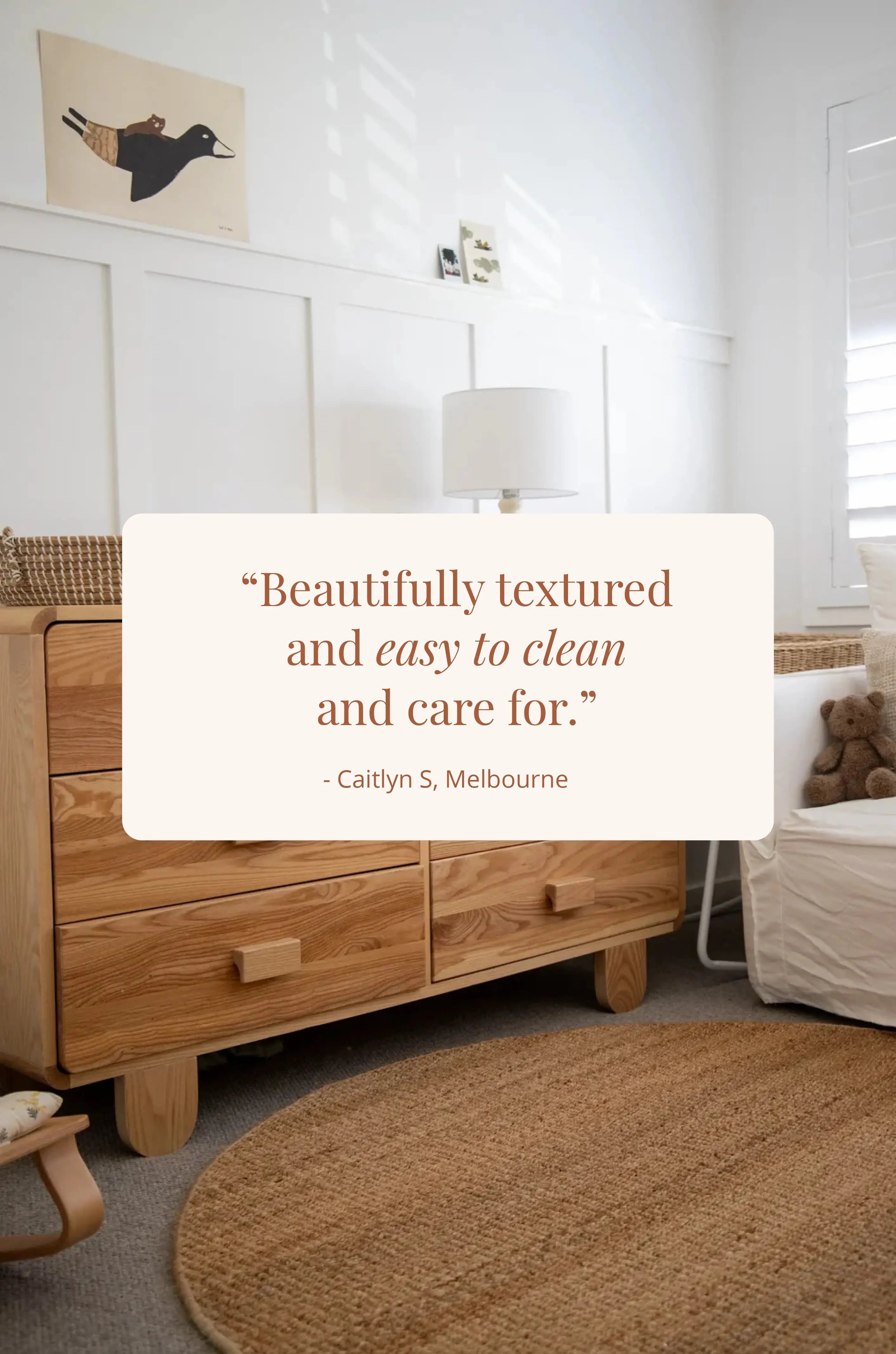 Because you need a rug that's not just beautiful, durable and easy to live with. You also need a rug made with integrity. Natural fibre rugs are an investment built to last instead of destined for landfill like synthetic/washable rugs.