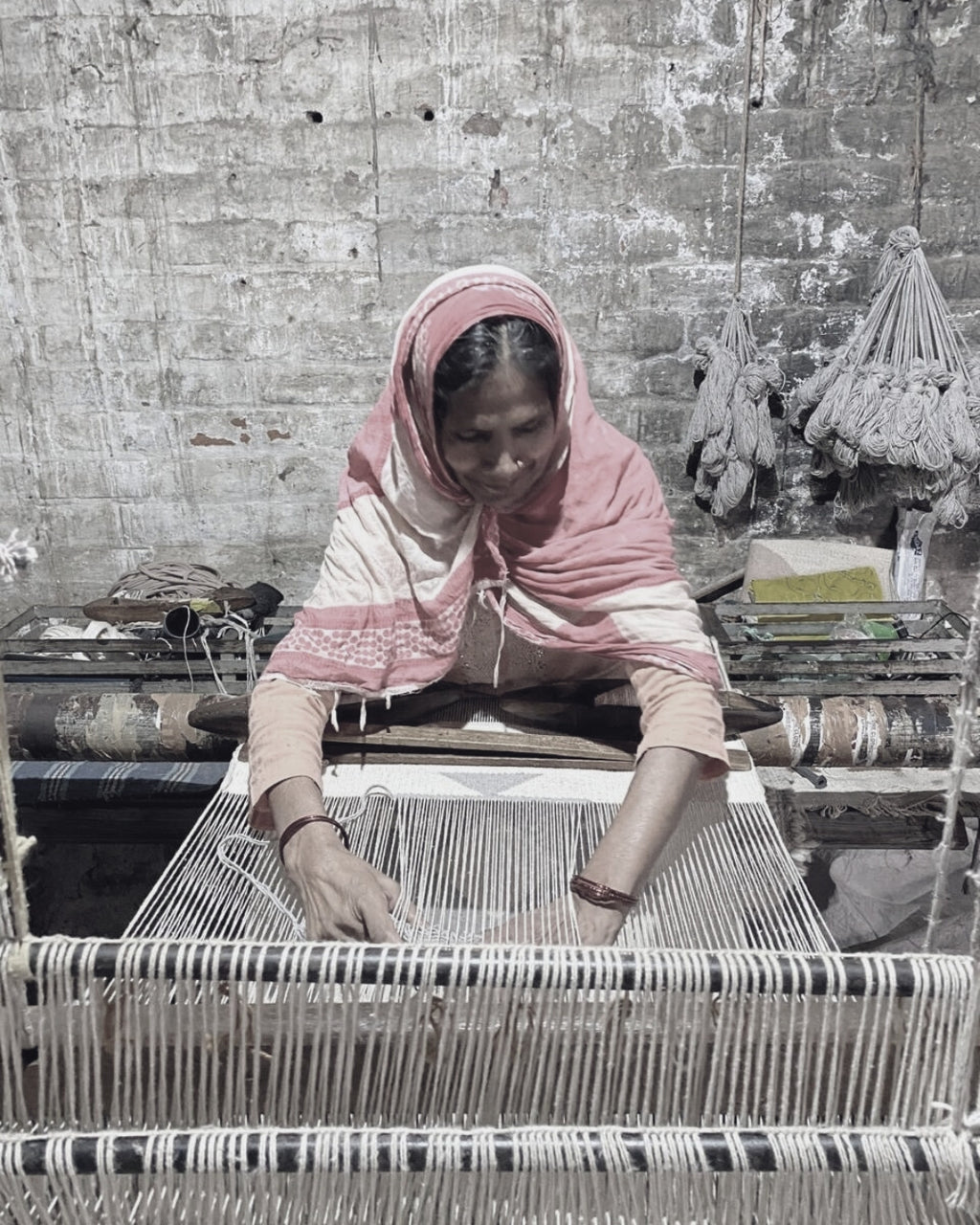 Handwoven by skilled female artisans in Panipat, known as India’s “City of Weavers"
