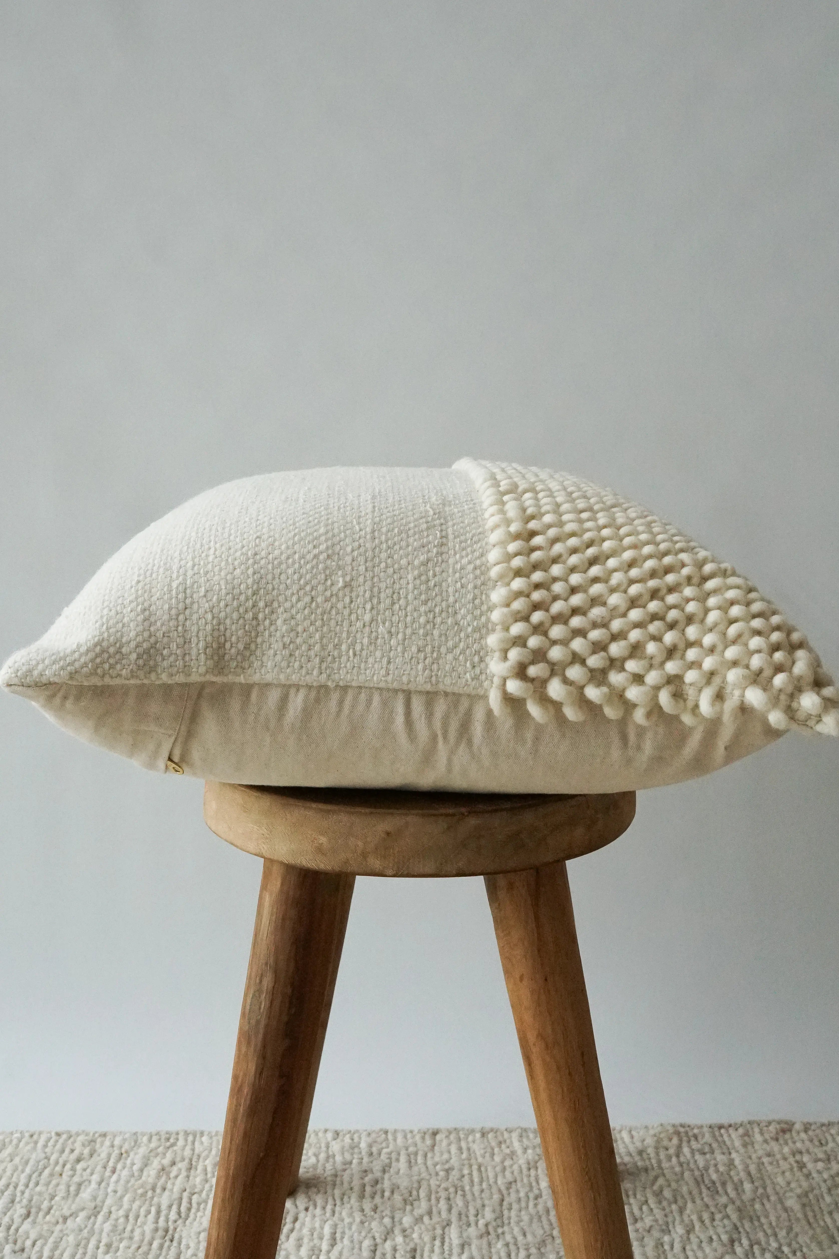 ✓ Distinctive looped detailing for an organic pebbly texture ✓ Soft, neutral tones that layer seamlessly with any style ✓ Ethically made, supporting fair wages and sustainable practices ✓ Adds both comfort and character to sofas, chairs, or beds ✓ Built to last with quality details like a durable gold zipper and cotton backing
